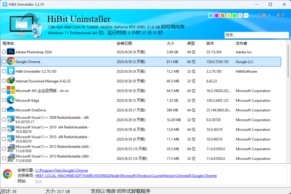 HiBit Uninstaller 是一个免费的软件卸载神器,专为解决 Windows 卸载不彻底、残留文件和注册表垃圾堆积的问题而设计。它不仅能够彻底清除程序,还能进行深度清理,删除顽固软件、批量处理预装程序,并强制删除不可删除的软件。此外,该工具还能管理启动项、清理垃圾文件、修复注册表问题、优化系统性能,并提供系统维护工具,帮助用户提升电脑运行速度。无论是预装软件、浏览器扩展,还是以 Windows 开头的程序,HiBit Uninstaller 都能轻松处理,让用户重获干净的电脑环境。